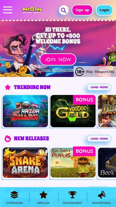 Bet4Joyカジノでは数十種類のスロットをプレイでき、PlaytechとGameOSが提供するビデオスロットも多数あります。Playtechのプログレッシブジャックポットネットワークも利用可能で、数百万ドルの賞金を獲得できるチャンスがあります。