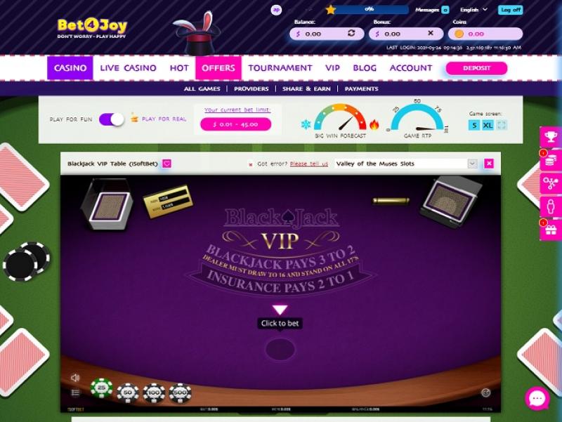 Bet4Joy Blackjack (Net Entertainment)拡大