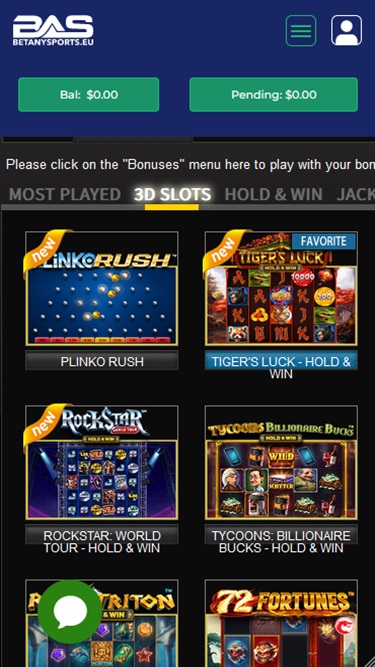 BetAnySportsは Real Time Gaming, BetSoft, Visionary iGaming, Fresh Deck Studios and Digital Gaming Solutionsを採用しており、カジノゲームはダウンロード形式とインスタントプレイ形式の両方でご利用いただけます。インスタントプレイはインターネットブラウザから直接読み込みます。モバイルプレイにも対応しており、スマートフォンやタブレットからゲームをプレイできます。