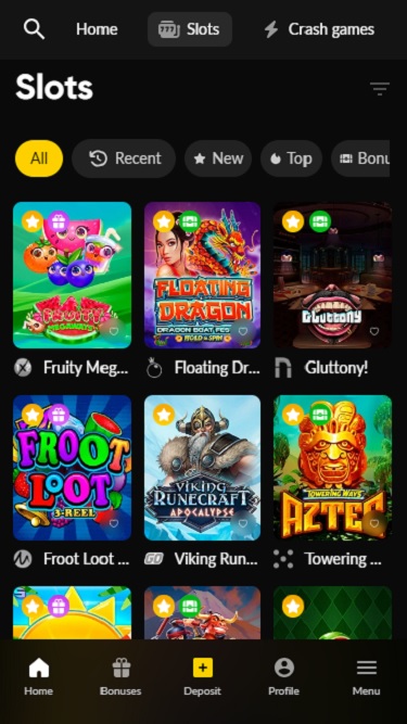 利用可能なゲームは、スロット、クラッシュ ゲーム、高速ゲーム、e スポーツ、ライブ カジノ、ビンゴ、TV ゲームなどの興味深いセクションに分かれています。これらのセクションには人気のカジノ タイトルが満載で、ぜひチェックしてみてください。