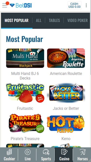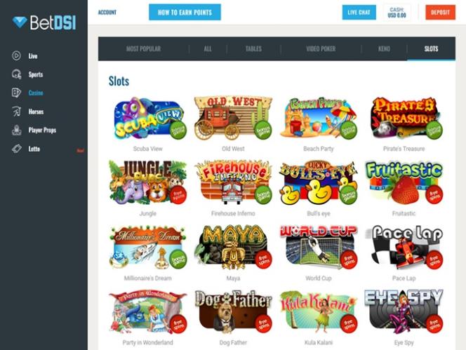 BetDSIのスロットはまずまずの品揃えですが、主に古いゲームを提供しています。そのため、最近のスロットによくある複雑で圧倒されるようなボーナス機能は備えておらず、すぐにプレイを始められるようになっています。