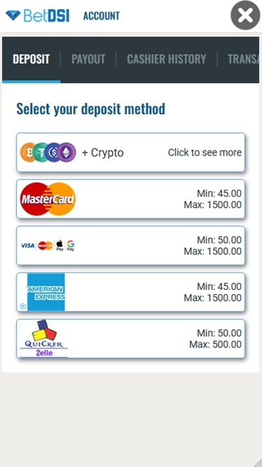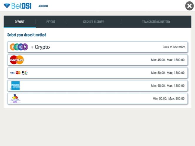 前述の通り、BetDSIは仮想通貨を有効な決済方法として受け入れています。ビットコイン、イーサリアム、ライトコイン、リップルなど、利用可能な通貨は数多くあります。ただし、ほとんどの仮想通貨は入金方法のみに対応しており、出金方法はそれほど豊富ではないことにご注意ください。
