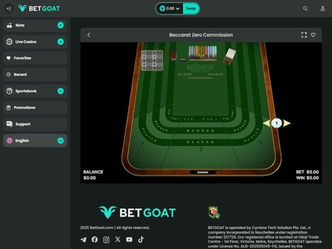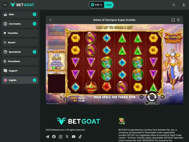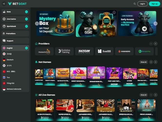 BETGOATは、主にアジアのプレイヤーを歓迎する、総合的なギャンブルサイトです。ヨーロッパやその他の地域からのプレイヤーも歓迎しています。オンラインスロット、ライブディーラー、テーブルゲーム、クラッシュゲームなど、幅広いカジノゲームに加え、スポーツベッティング、プロモーション、ボーナスも豊富に取り揃えています。