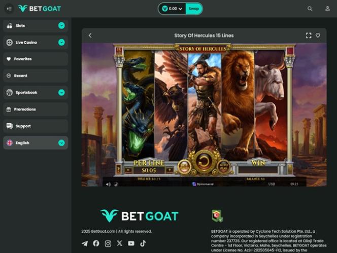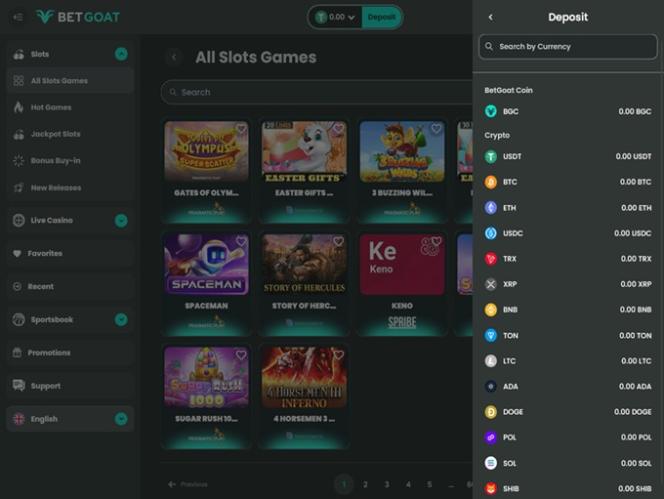 ブランド名が示す通り、このオンラインカジノのメインマスコットはヤギで、カジノのいたるところにヤギの華やかなアートワークが溢れています。ウェブサイトはダークな背景とブルーの色合いで構成された魅力的なカラーパレットを採用し、ユーザーインターフェースはプレイヤーがすべてのゲームやセクションを簡単にナビゲートできるように設計されています。