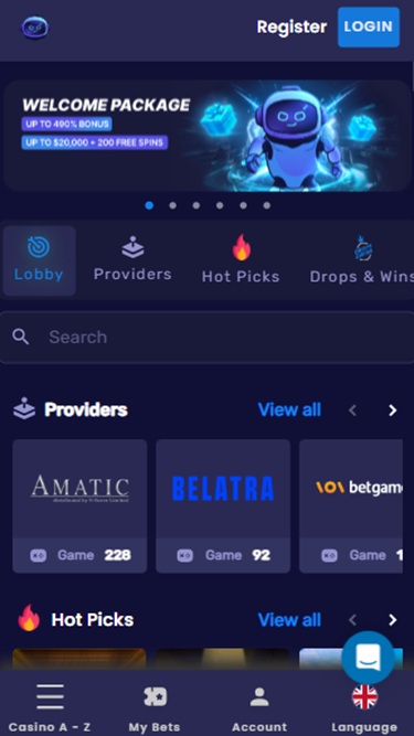 私たちは一目見て、カジノのビジュアルだけでなく、メガウェイ、スロット、ライブカジノセクション、テーブルゲーム、クラッシュゲーム、ルーレット、ブラックジャック、ロト、スクラッチカード、インスタントゲーム、ゲームショー、ビンゴ、ダイス、その他の魅力的なカテゴリーを含む利用可能なオプションにも感銘を受けました。