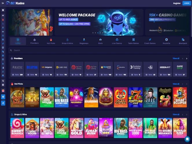 ウェブページには左側にメイン メニューがあり、メイン領域は、オンライン ギャンブルの世界を初めて知ったプレイヤーでも、経験豊富なプレイヤーでも、BetKudos で試してみたいことを正確に知っているプレイヤーでも、簡単に閲覧できるギャンブル コンテンツ用に予約されています。