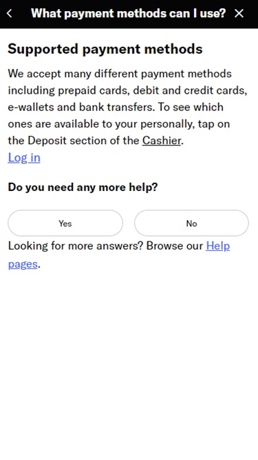 銀行システムは良好ですが、他の国にあるオンラインカジノほど速くはありません。これは、オンラインギャンブルに関する銀行規制のためです。それでも、クレジットカード、Skrill、PayPal、PayWithCashを使って資金を移動できます。出金には数日かかる場合もありますが、確実に送金されます。