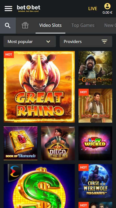 BetOBet カジノには、スポーツ賭博用の別セクションが用意され、ライブディーラー ゲーム カテゴリに簡単にアクセスでき、テーブル ゲームやビデオスロットのタイトルも多数取り揃えた、非常に大規模なゲーム ライブラリがあります。