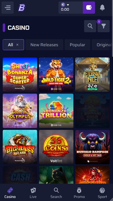 ホームページの上部は、カジノとスポーツブックの両方で現在開催中のプロモーション情報が掲載されています。メインページをスクロールしていくと、すべてのゲームがカテゴリー別に分類されているので、お好みのゲームをすぐに見つけることができます。もちろん、検索バーも用意されているので、お気に入りのゲームだけでなく、プロバイダーやカテゴリーも検索できます。