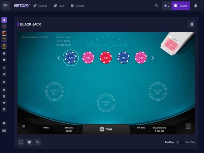 Betoryは、豊富なゲーム数を誇る仮想通貨対応のオンラインカジノ&スポーツブックです。スロット、ブラックジャック、バカラ、クラップスなどのテーブルゲーム、メジャースポーツイベントへの賭けなど、どんな賭け方でもきっと満足していただけます。