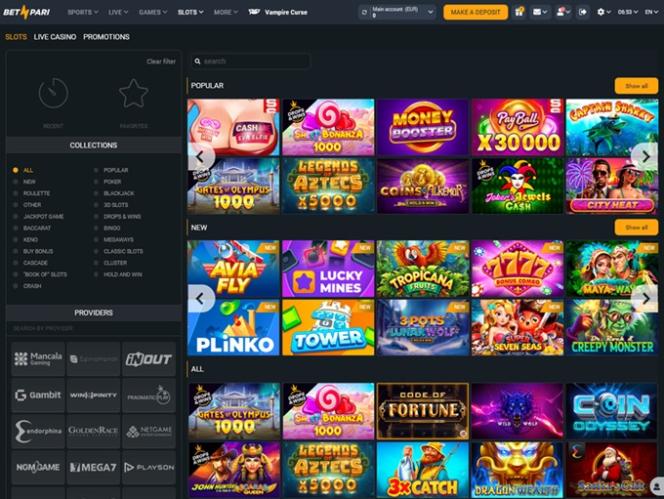 BetPariは、幅広いカジノゲームとスポーツベッティングオプションの提供に重点を置いた大規模オンラインカジノです。オンラインスロット、ライブディーラー、インスタントクラッシュゲーム、テーブルゲームなど、豊富なゲームライブラリで知られています。また、ボーナス、リワード、その他のインセンティブを含む充実したプロモーションプランも提供しています。