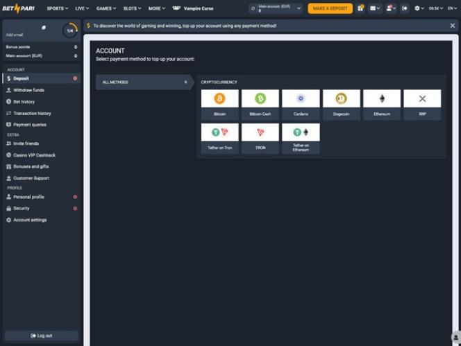 ブランド名が示す通り、BetPariはスポーツベッティングサイトでもあります。世界中で人気のスポーツやeスポーツの試合はもちろん、その他多くのあまり知られていないスポーツやイベントにも賭けることができます。スポーツブックは大規模で、ライブベッティング機能を含むほぼ無限のオプションを提供しています。