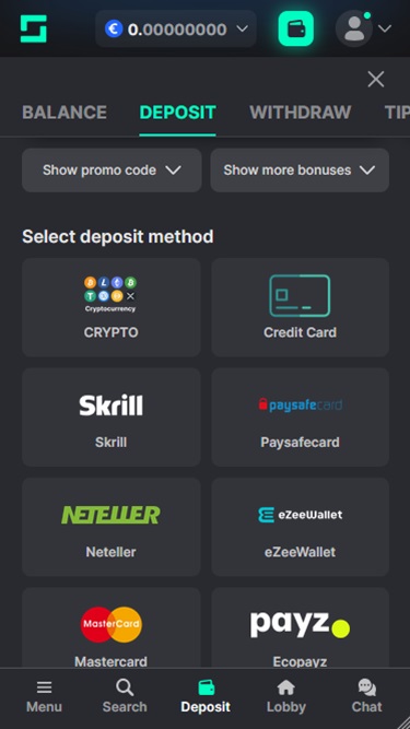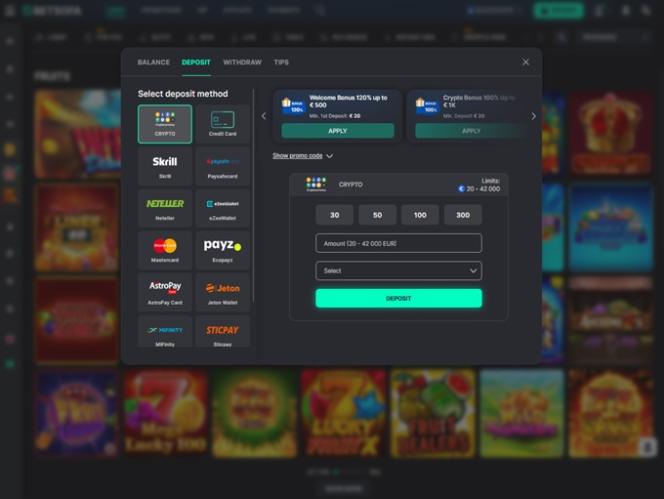 入金と出金には、クレジットカードやデビットカード、SkrillやNetellerなどのサービスを含むさまざまな銀行方法を使用できます。また、ビットコイン、イーサリアム、ライトコインなどの暗号通貨もサポートされています。