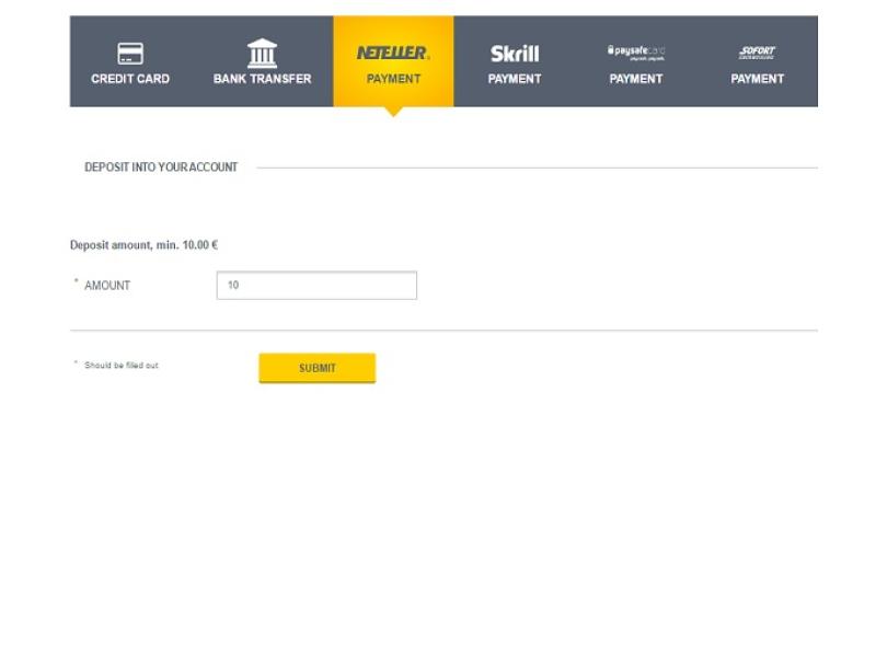 BetSoloのバンキングシステムでは、PayPal、銀行振込、MasterCard、Visa、Skrill、Sofort、Paysafecard、Netellerによる入金と出金が可能です。出金時間は適切で、利用規約には現在出金制限は記載されていません。