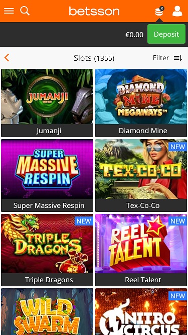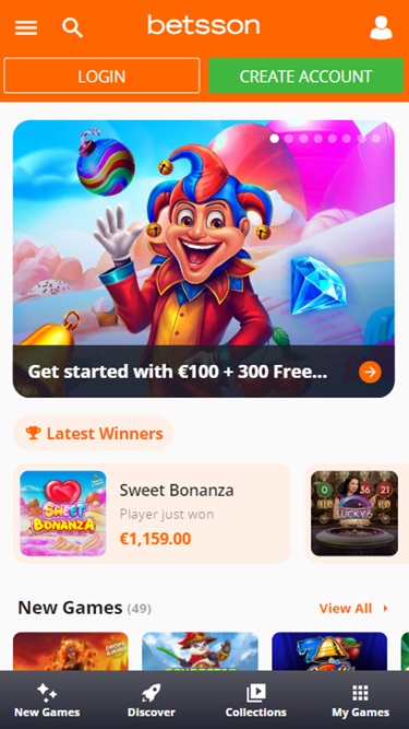 Betssonカジノは Microgaming, Playtech, BetSoft, 1x2gaming, Big Time Gaming, ELK Studios, Evolution Gaming, EYECON, Ezugi, Genesis Gaming, Habanero Systems, iSoftBet, lightningboxgames, Novomatic, Oryx, Play'n GO, playson, Quickspin, Rabcat, Relax Gaming, Thunderkick, Yggdrasil, Endorphina, Wazdan, Betgames, Booming Games, Stakelogic, Pragmatic Play, Nolimit City, Felt Gaming, Red Tiger Gaming, Red Rake Gaming, Skillzzgaming, Fantasma Games, FunFair, SYNOT Games, FUGA Gaming, Kalamba, Sigma Gaming, Skywind, Triple Edge Studios, Northern Lights Gaming, Stormcraft Studios, Switch Studios, Electric Elephant Games, Pocket Games Soft, Bulletproof Games, All41 Studios, Gluck Games, Gameburger Studios, Pulse 8 Studios, Neon Valley Studios, Spearhead Studios, SpinPlay Games, Real Dealer Studios, GONG Gaming, Blue Guru Games, Lady Luck Games, On Air Entertainment, Buck Stakes Entertainment, Games Global, Wizard Games, 2by2 Gaming, Ash Gaming, Blueprint Gaming, Greentube, Leander Games, Pariplay, Push Gaming, Inspired Gaming, Genii, Gamomat, RFranco Group, Reel Time Gaming, MGA, Authentic Gaming, Bally Wulff, Iron Dog Studio, Old Skool Studios, Foxium, Just For The Win, The Games Company, Reflex Gaming, MetaGU, PearFiction Studios, Apollo Games, Wild Streak Gaming, Slingshot Studios, Fortune Factory Studios, Jade Rabbit Gaming, Green Jade Games, STHLM Gaming, RubyPlay, 4ThePlayer, AvatarUX, Gamevy, Crazy Tooth Studio, NetGaming, High 5 Games, YoloPlay, ReelPlay, Alchemy Gaming, Rarestone Gaming, Plank Gaming, Vibra Gaming, Aurify Gaming, BB Games, Snowborn Games, Boomerang Studios, Hacksaw Gaming, Max Win Gaming, Gold Coin Studios, Bang Bang Games, Slotmill, Peter And Sons, Absolute Live Gaming, Eurostar Studios, Aurum Signature Studios, Lucksome Gaming, Beter, Religa, Area Vegas, RAW iGaming, Betradar, Apparat Gaming, INO Games, Nailed It! Games, Live 5, Indigo Magic, Live88 and Sneaky Slotsを採用しており、数百ものゲームをカジノのライブラリーに提供しています。サイトはウェブブラウザからアクセスでき、デスクトップとモバイルの両方に対応しています。