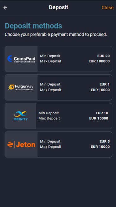 さらに、プレイヤーは週3回(月曜~日曜)出金を申請でき、100.00ユーロまでの出金は無料です。100.01ユーロから1000.00ユーロまでの出金には1回につき15.00ユーロの手数料がかかり、1000.01ユーロ以上の出金には1回につき25.00ユーロの手数料がかかります。