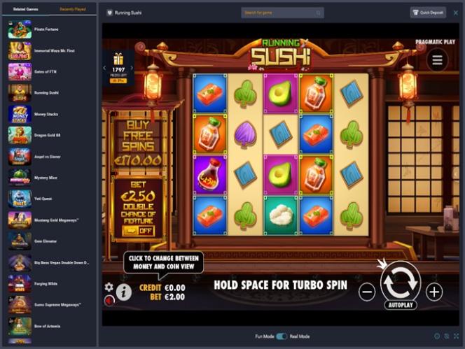 さらに、スロットからブラックジャック、ルーレット、バカラの様々なバリエーションまで、典型的なカジノゲームを豊富に取り揃えています。ビデオポーカーやスクラッチカードのコーナーもあります。ロビーは直感的に操作しやすい構造になっています。