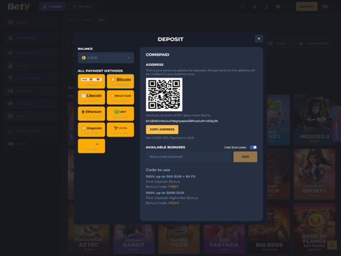 ウェルカムパッケージの利用は、リスクを抑えて気軽にカジノゲームを始め、じっくりと時間をかけてプレイしたいギャンブラーにとって絶好の機会です。さらに、Bety.comでは、カジノへの最初の3回の入金に対して、お得な入会特典をご用意しています。