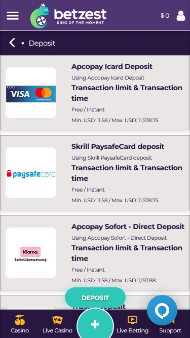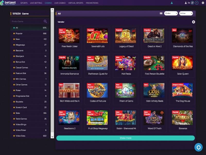 標準的なゲームに加えて、ベッツエストでは、充実したスポーツブックとライブディーラー カジノもご利用いただけます。