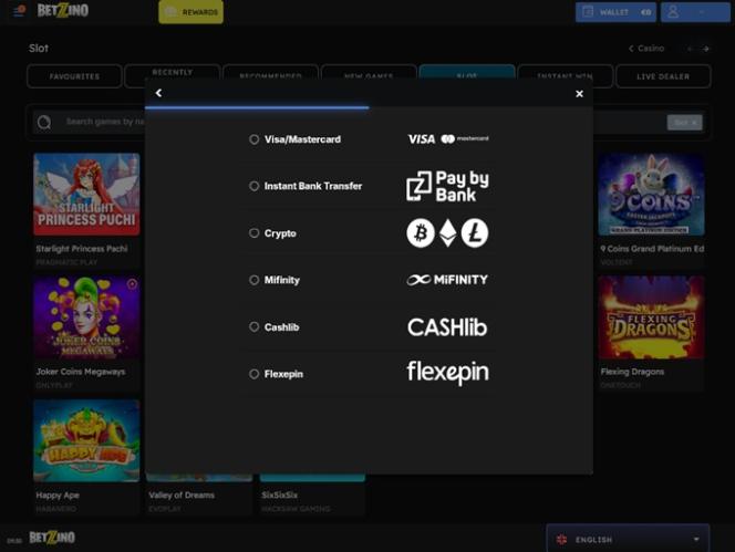 での銀行オプション Betzino Casino