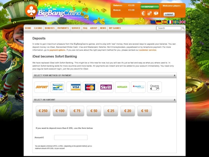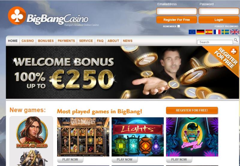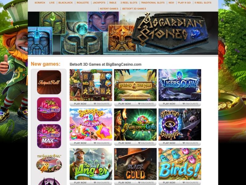 BigBang Casino は、Web ベースのプラットフォームを通じて提供される Microgaming, Net Entertainment, BetSoft, Genesis Gaming, Play'n GO, Games Global and NextGenによって運営されています。