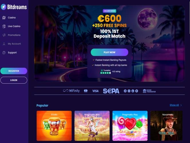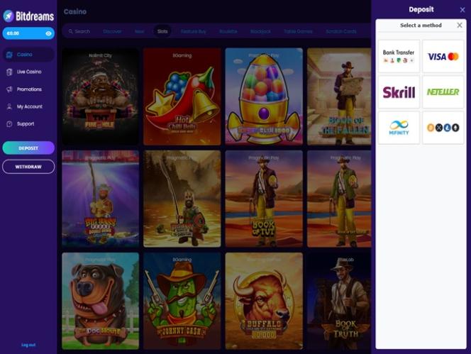 Bitdreamsは誰にとっても素晴らしいギャンブルの場ですが、特に暗号通貨や暗号通貨決済のファンにとっては魅力的でしょう。この運営会社は、プレイヤーに暗号通貨での入出金方法を豊富に提供していますが、eウォレット、ペイメントカード、銀行振込といった、より伝統的な銀行決済方法も選択できます。