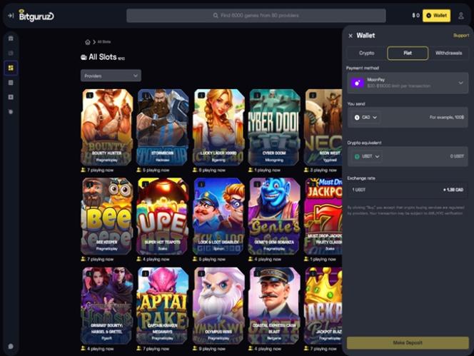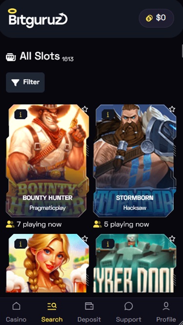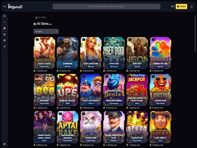 Bitguruzは、アンジュアンライセンスに基づき運営されている、仮想通貨対応のオンラインカジノです。幅広いカジノゲームを取り揃えています。テーブルゲームをお探しの方でも、クラッシュゲームやインスタントゲームで瞬時にアクションを楽しみたい方でも、スロットマシンでリールを回したい方でも、きっとお好みのゲームが見つかるはずです。
