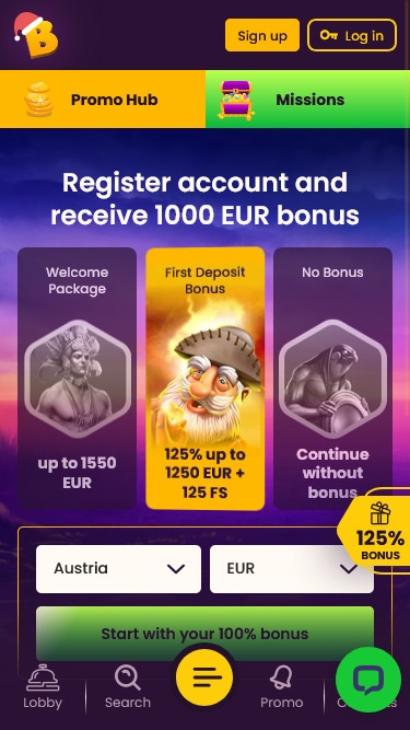 登録プロセスは簡単で、3つのステップで構成されています。サインアップ時に、プレイヤーはウェルカムボーナスを受け取ることができます。
