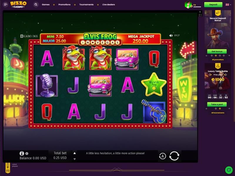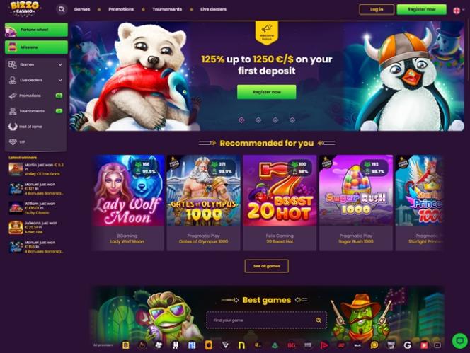 Bizzoの場合、カジノサプライヤーの長いリストのおかげで、スロットセクションはトップクラスのタイトルでいっぱいになりました。Cazombie、It's a Joker、777 Spinbox、Elvis Frog in Vegas、Hot & Spicy、Johnny Cash、Book of Eye、Assasin Moon Hyper Hold、Mechanical Clover、100 Joker Staxx 100 Lines、Take Olympus、Startup Valley、Africa Cold 2 Treasure Way、#buyBonus of Maya、Book of Cats、Wolf Power Hold and Win、Moon Sisters: Hold and Win、3 Coins、Book of Cai Shen、Book of Divine、Book of Tribes Reloaded、Buffalo Rampage、Fire in the Hole xBomb、Four Lucky Diamonds、Kitsune's Scrolls Expanded Edition、Egyptian Dreams Deluxe、Jellyfish Flow、Knockout Football、Knockout Football Rush、London Hunter、Magic Oak、Presto!、Pumpkin Patchなどです。サンタの村…