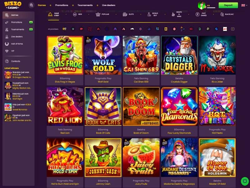 Bizzoでは、既に述べたように、誰もが楽しめるゲームが揃っています。プレイヤーは中央に配置された検索バーを使って、ゲームタイトルでお気に入りのゲームを見つけたり、ゲームカテゴリーを閲覧したりできます。Bizzoでは、幅広いオンラインカジノゲームを提供しています。