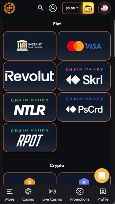 新規プレイヤーのアカウント登録は、カジノ運営者がウェブサイトで宣伝している通り、たった1ステップで1分もかからない、迅速かつ簡単なプロセスです。ギャンブラーはメールアドレスの確認も済ませれば、この有望な暗号通貨対応ゲームサイトへの準備は完了です。
