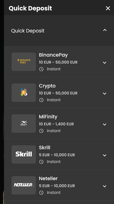 さらに、シンプルなルールとエキサイティングなメカニズムを特徴とする、充実したインスタントクラッシュゲームのラインナップをお楽しみいただけます。人気のクラッシュゲームには、Aviator、ChickenX、Uncrossable Rush、Avia Masters、Spaceman、Aviatrix、Plinko、Avia Rush、Hot Slice、Balloon Odyssey Crash、Dragon Power Keno、Golfing Gloryなどがあります。