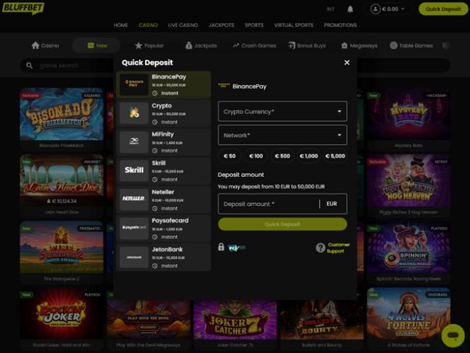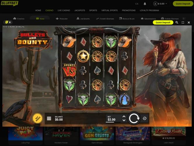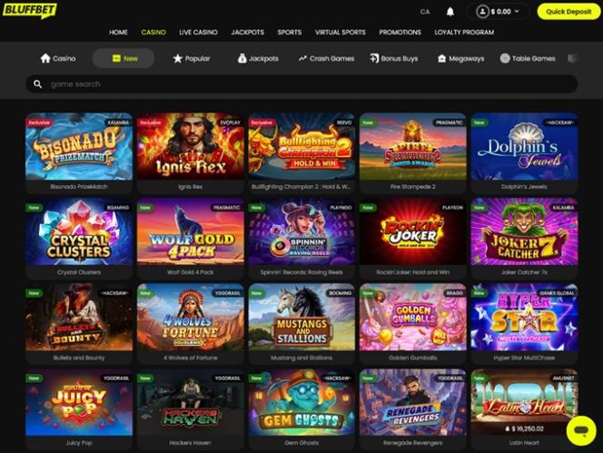 Bluffbetは、豊富なカジノゲームとスポーツベッティングオプションを揃えたギャンブルサイト兼大規模スポーツブックです。主にカナダからのプレイヤーを歓迎し、リアルマネースロット、クラッシュゲーム、ライブディーラー、テーブルゲームなど、幅広いゲームオプションを提供することを約束しています。さらに、ボーナスや様々な特典を含む充実したプロモーションプランも提供しています。