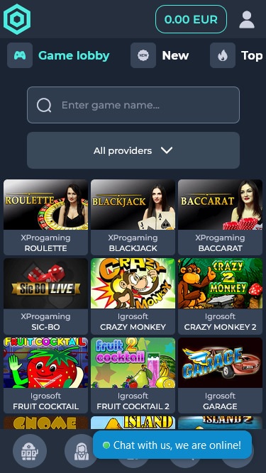 ゲームロビーを見てみましょう:ルーレット、ブラックジャック、バカラ、シックボー、クレイジーモンキー、クレイジーモンキー2、フルーツカクテル、フルーツカクテル2、ガレージ、ノーム、アイランド、アイランド2、ラッキーハウント、パンプキンフェアリー、パイレーツ、パイレーツ2、ロッククライマー、レジデント、スウィートライフ、スウィートライフ2、バーニングフルーツ、キングタット、ヒドゥンチャーム、ラッキー7、ロイヤルジュエルズ、キンハウス、イティアダ、ラッキーウィッチ、ジャックサロボス、ファストコルト、カイシェン、ラッキーサーチ、ワイントレジャリー、シンフォマジック、ベアーズコーナー、ホンロン、アメカーフォース、フルトンドン、エルダリオ、ジャンジャン、スパイシーフルール、ルダコップ、ブクボラ、ミスティックジャングル、ゴールデンフリース、チャンボフア、ポセイドントレジャー、スマキーブー、ゴールド&ホース、ブジグジ、ズンバジ、トパトゥー、オロコーン、コート・マテ、コフェティ、オルターゴッズ、ヴァンピオン、アクヴァリコ、ブライド・デザイア、ミステリアス・インディア、ホット・クルーズ、NYギャングスターズ、シークレッツ・オブ・アルケミー、トロス、ミルミロン、トゥマトップ、ウェルキン・ガーズ、クランキー・フレーバー、スター・ジョング、アルケミーズ・エレメンツ・フィリバスターズ・ゴースト、フォーエバー・ホット、ダイゾーン、ヒストリー・オブ・アビエイター、ティヌーチキー、スキャンディ・ゴールド、コスモス・ジャンピング、メソゾイック・テイルズ、マッシュルーム・フェイブル、ネアンデルタール、シルバー・ホーバーク、ウィンチ&ホイールズ、クール・プレイス、チタン・フルーツ、ティンバー・テイル、ダブル・リッチ、ジョイズ・オブ・ライフ、ブリック・フルーツ、アルハテオス、フルータイルズ、グラス・フルーツ、グリーン・フォグ、インキー・ジングル、マイティ・ズー、キッテンパルト、クイック・スタンプ、バイキング、アンダール・バハール、レイン・オブGnomes、Multiplier Man、GoodFishes、Parrots of the Caribbean、Lotto Lucky、Robin Hood and his Merry Wins、Wishes、The Big Deal、Space Traders、Squish、9 Lions...