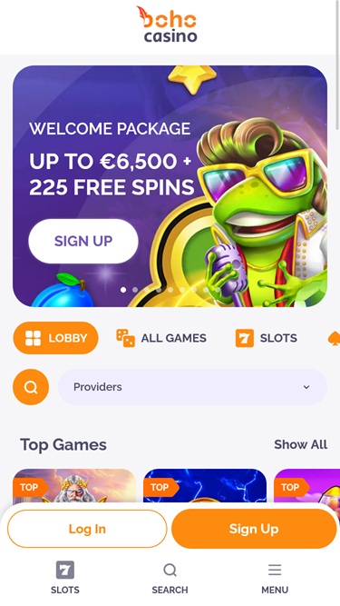 初めてカジノのホームページを読み込むと、ポップアップ ウィンドウが表示され、BOHO でアカウントを作成するように求められます。