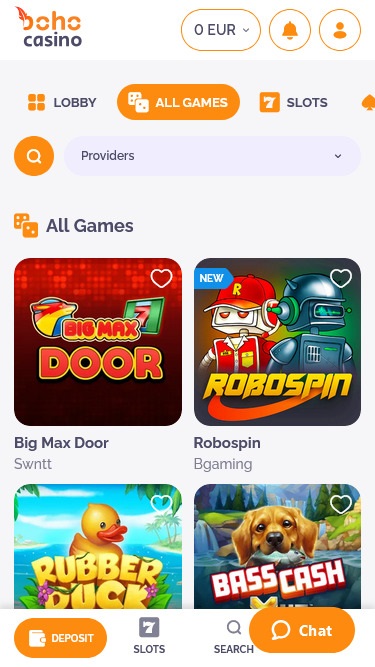 このギャンブルブランドは、パステルカラーでデザインされた美しいプラットフォームを提供しています。インターフェースはミニマルな印象ですが、非常に整理されており、機能性も充実しています。デスクトップとモバイル向けに最適化されているため、BOHOはプレイヤーがどのデバイスでお気に入りのゲームをプレイしても、優れたゲーム体験を提供します。