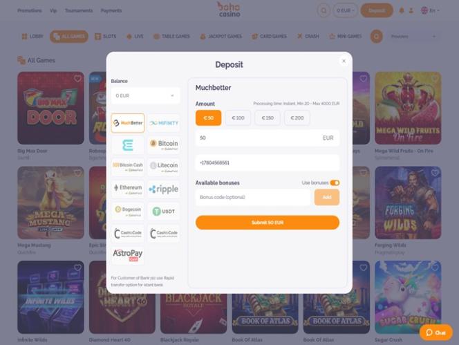 BOHO カジノは、すでに述べたように、決済カード、電信送金、電子ウォレットなどの従来の決済オプションに加えて、さまざまな暗号通貨決済オプションを提供する現代的なギャンブルの場です。
