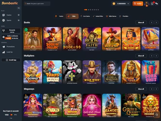 今日では、ある程度のオンラインスロットを備えていないギャンブルプラットフォームを見つけるのはほぼ不可能です。Bombastic Casinoも同様です。ここでは、魅力的なテーマと興味深いメカニズムを備えた、素晴らしく魅力的なスロットゲームを数百種類もプレイできます。