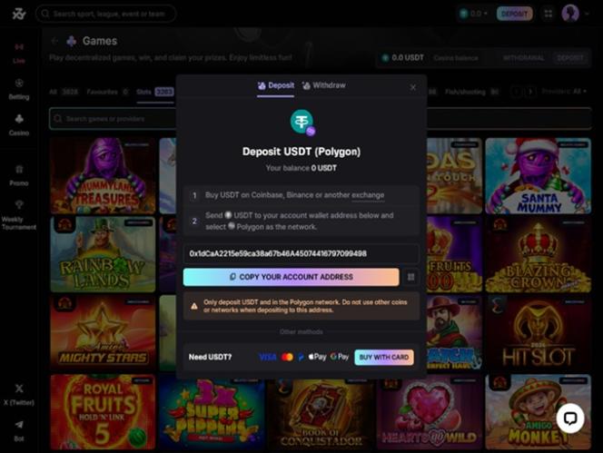 このカジノは暗号通貨に特化したプラットフォームであるため、すべての賭けはチェーン上で透明性と検証性があり、さらに信頼性と信頼性を保証する主要な分散型賭博プロトコルである Azuro を搭載しています。