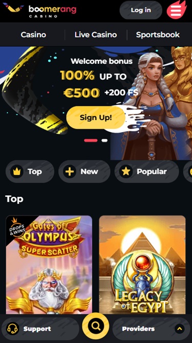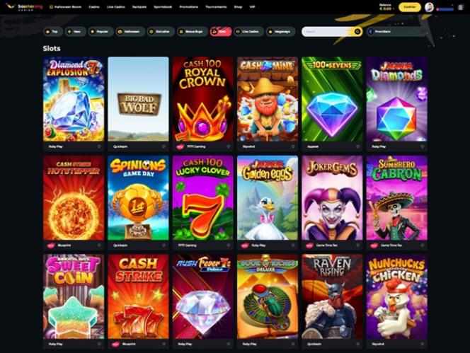 Boomerangでは、快適なゲーム環境が保証されています。プレイヤーがまず気づくのは、プラットフォームがモダンで、整理整頓され、ユーザーフレンドリーであること、そして業界標準と最新トレンドをすべて満たしていることです。