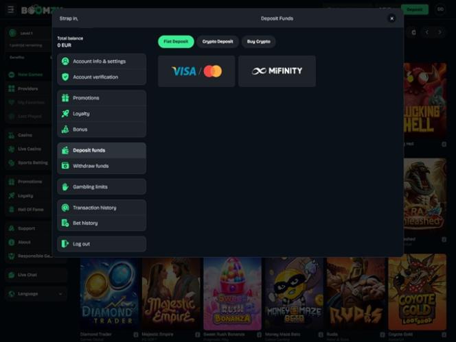 Boomzy Casinoは、スリリングなゲーム体験とアドレナリンの奔流を求めるプレイヤーにとって、まさにうってつけのハイオクなオンラインカジノです。魅力的なプロモーションプランと、さらに魅力的なゲームライブラリを備えた、仮想通貨対応のプラットフォームをお探しなら、Boomzy Casinoはまさにうってつけの場所かもしれません。