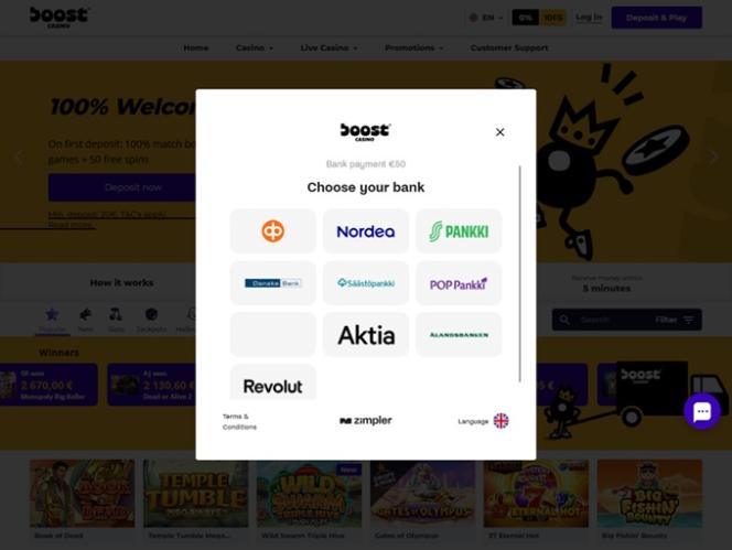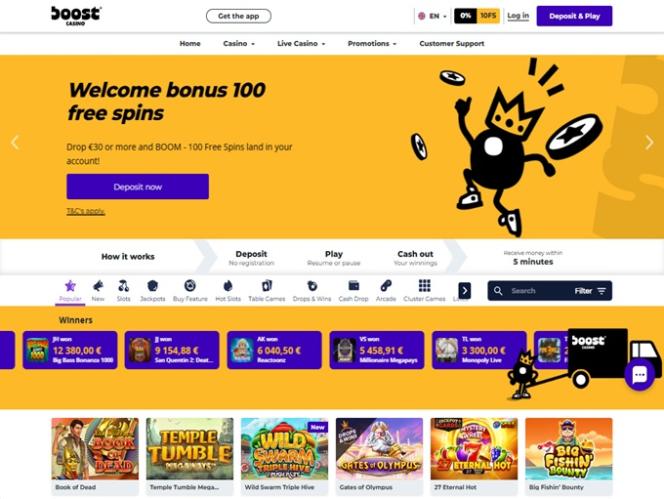 Boost Casino にはライブディーラー セクションもあり、ゲームは一般的にカテゴリ分けされており、新しいタイトルとジャックポットのあるゲームが独立したカテゴリに分けられているため、非常に簡単に閲覧できます。