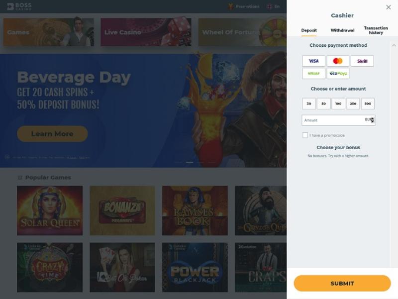 標準的なカジノ ゲームに加えて、プレイヤーは Boss で完全なライブ ディーラー カジノも見つけることができます。