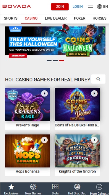 Bovada では、モバイル カジノ、スポーツ、ポーカー、競馬製品も提供しています。