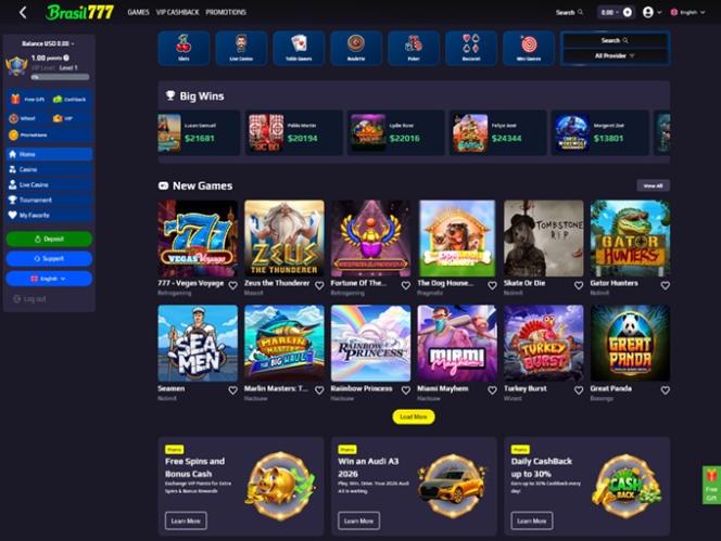 Brasil777は、主にブラジルのプレイヤーを対象としたモダンなオンラインカジノで、オンラインスロット、ライブディーラー、インスタントクラッシュゲーム、テーブルゲームなど、幅広いカジノゲームを提供しています。さらに、プレイヤーが参加できる幅広いプロモーション、ボーナス、トーナメントも提供しており、従来の暗号通貨と最新の暗号通貨の両方の決済方法に対応しています。
