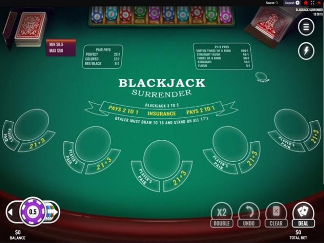 | Blackjack Surrender | ハンド | いいえ | 任意の2 | 1 | いいえ | - | - | はい | 99.65% | 6 | いいえ |