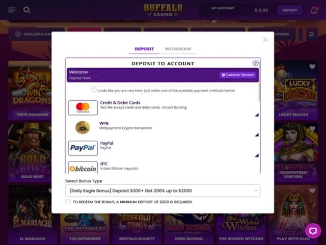 バッファローカジノは、主にアメリカとカナダのギャンブラーを対象としたオンラインカジノです。このレビューを執筆時点では、このブランドはギャンブルライセンスを取得せずに運営されていることにご留意ください。
