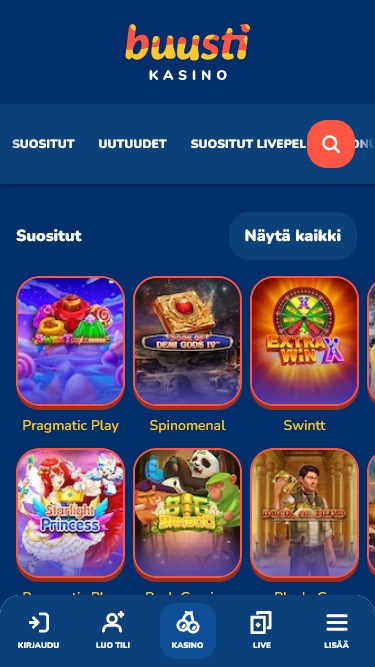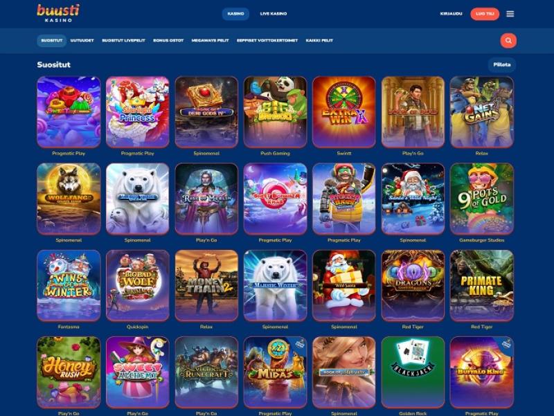 Buusti Kasinoには高品質なソフトウェアプロバイダーが多数参加しているため、最高のスロットタイトルをお楽しみいただけます。特に人気の高いタイトルをいくつかご紹介します: Sugar Rush、9 Pots of Gold、Mask of Amun、Cash Pig、Majestic Winter、Buffalo Kingなど。
