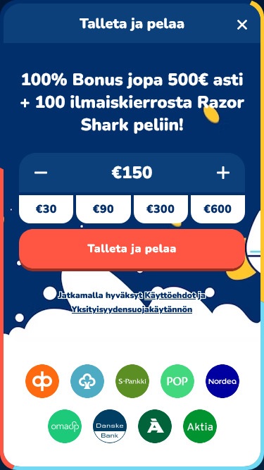 - これは、フィンランドとノルウェー向けの他のいくつかの支払いオプションを備えたPay N Playカジノです。