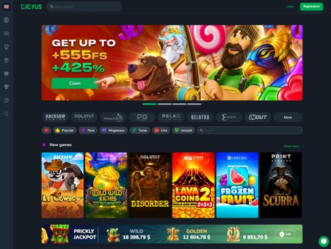 2025年に設立されたCactus Casinoは、リアルマネースロット、ライブディーラーゲーム、テーブルゲーム、インスタントクラッシュゲームなど、幅広いカジノゲームを提供する最新のオンラインギャンブルプラットフォームです。カナダ、ポーランド、ドイツからのプレイヤーを受け入れており、幅広いゲームオプション、プロモーション、ボーナス、ジャックポットに加え、暗号通貨もご利用いただけます。